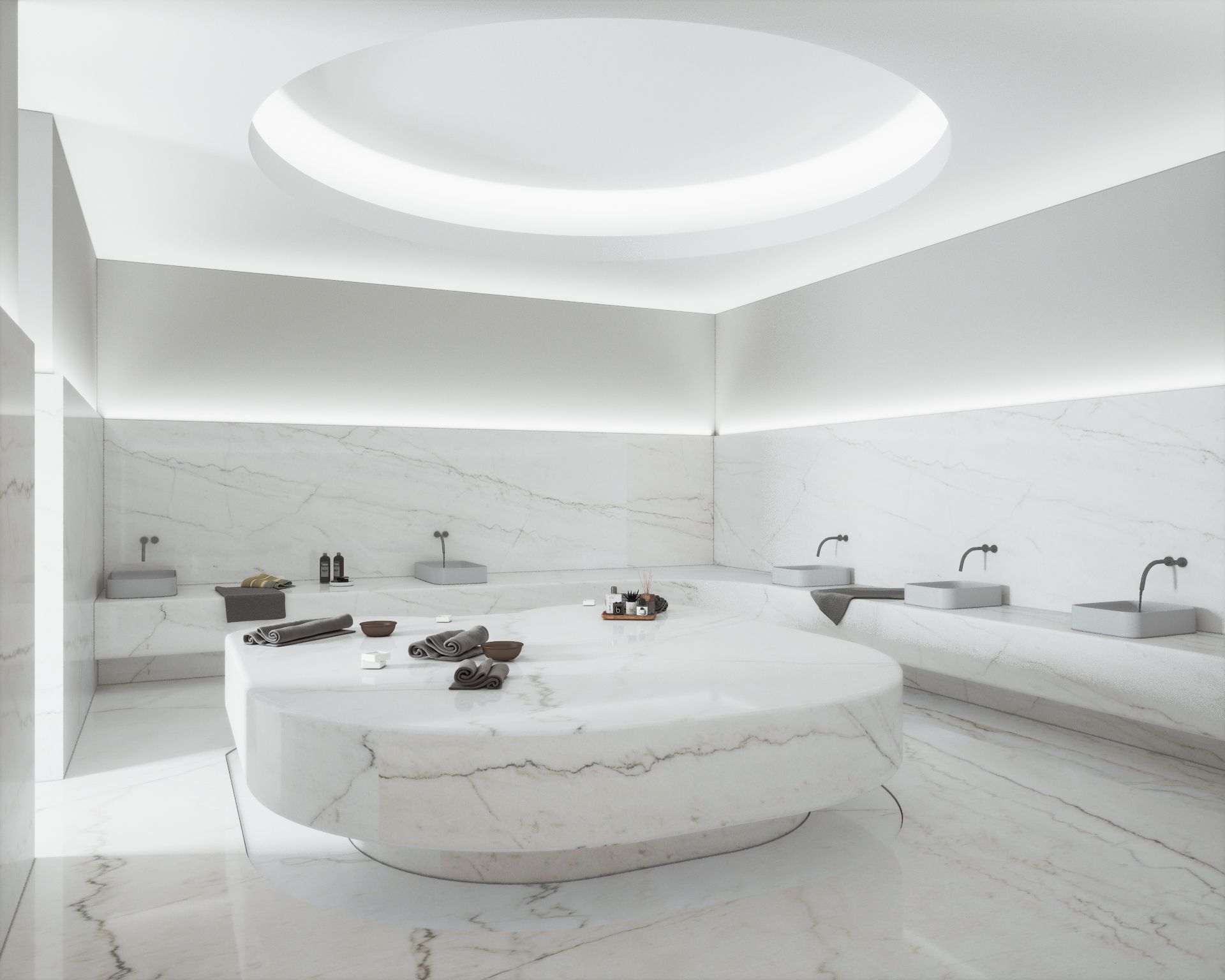 - Mutfak: Çimstone kuvars tezgahlar ve tezgah arası, yumuşak dokunuşlu lake dolaplar