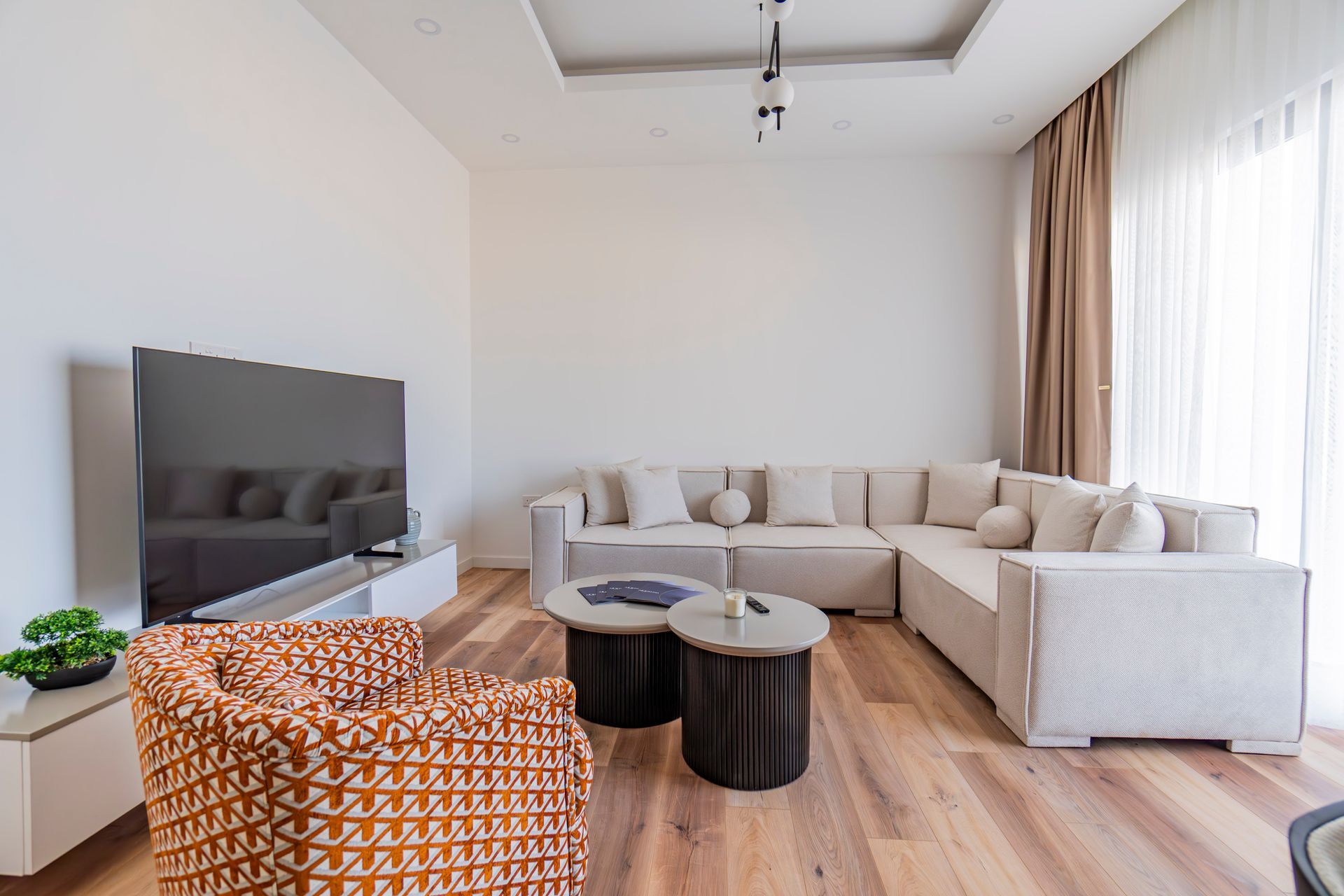 - Oturma odası ve yatak odaları: Laminant parke veya büyük formatlı seramik karolar